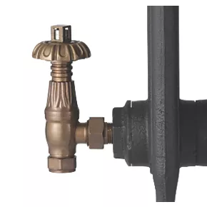Traditionally styled thermostatic radiator wheel valve with ornate head and lockshield. Perfectly matched for cast iron and column radiators.