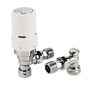 Flomasta White / Chrome Angled Thermostatic Radiator Valve & Lockshield 15mm x 1/2″