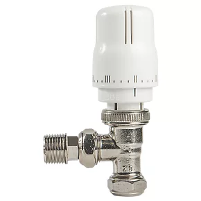 Flomasta White / Chrome Angled Thermostatic Radiator Valve & Lockshield 15mm x 1/2″