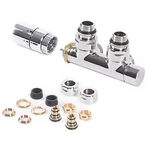 Terma Chrome Angled 50mm Thermostatic H-Block Radiator Valve 15mm x 1/2″