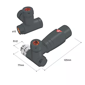Towelrads Anthracite Corner Thermostatic Dual Fuel Corner Radiator Valve & Lockshield 15mm x 1/2″