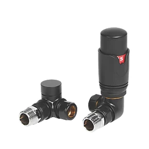 Towelrads Black Angled Thermostatic Corner TRV & Lockshield 15mm x 1/2″