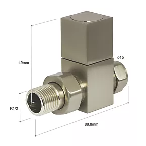 Towelrads Brushed Nickel Straight Manual Radiator Valve 15mm x 1/2″ 2 Pack