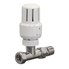 White Straight Thermostatic TRV & Lockshield 15mm x 1/2″